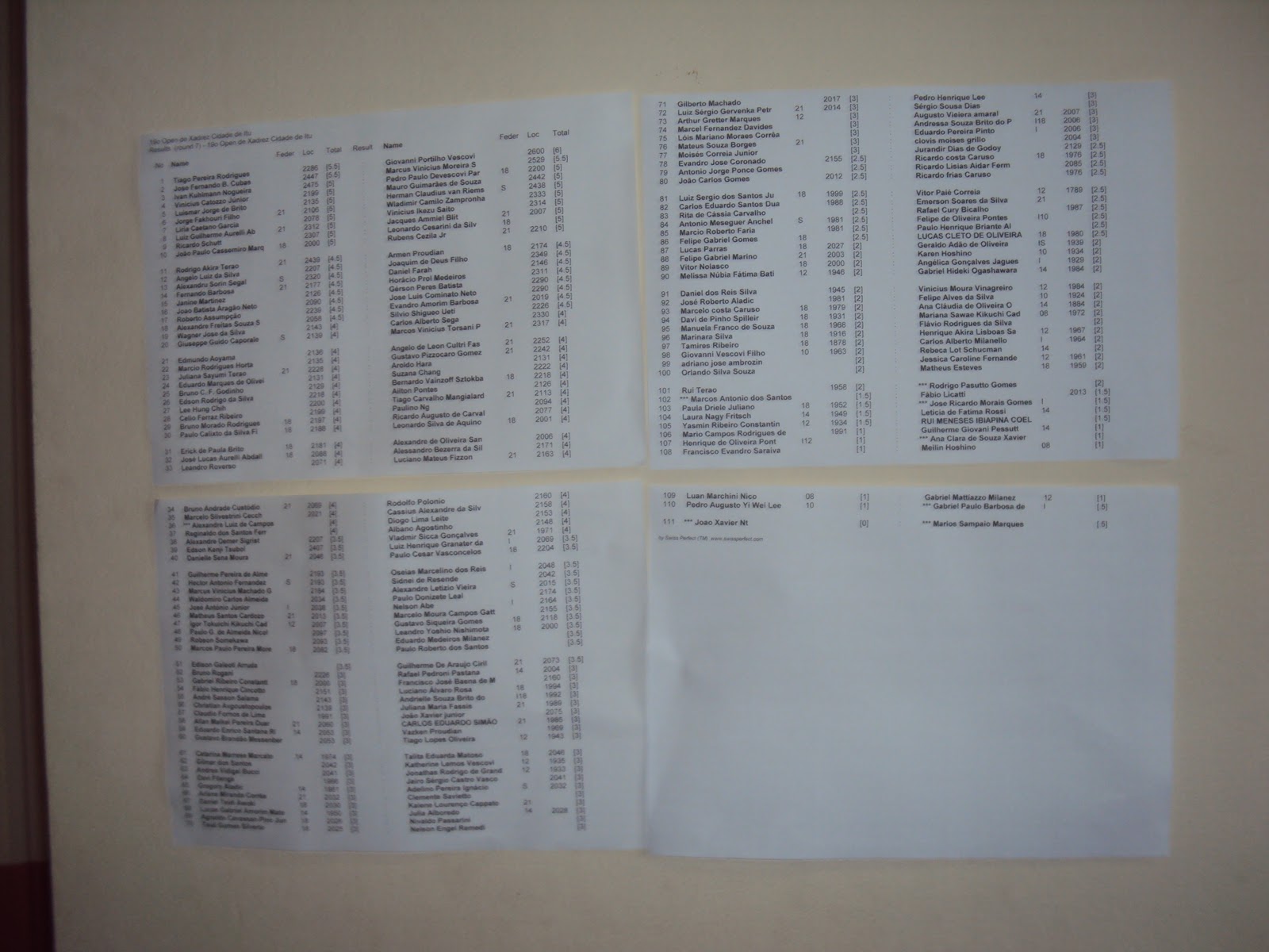 Geral 1º Giovanni Vescovi 7 2º Marcus Vinicius Santos 6 3º Wladimir Camilo Zampronha 6 4º José Fernando Cubas 6 5º Mauro de Souza 6 6º Ivan Nogueira 6 7º Ricardo Schütt 6 8º Tiago Rodrigues 5½ 9º Vinicius Ikezu Saito 5½ 10º Luiz Guilherme Abdalla 5½ Ituano 1º Nelson Abe 4½ 2º Celio Ribeiro 4 3º Daniel Silva 4 Ituana 1ª Andressa do Prado 3½ 2ª Andrielle do Prado 3 3ª Angélica Jagues 2 Rating <2150 1º Luismar Jorge de Brito 6 2º Jorge Fakhouri Fo 5 3º Alexandre Santos 5 Feminino 1ª Líria Garcia 5½ 2ª Janine Martínez 5½ 3ª Juliana Sayumi Terao 5 Sênior (nascidos antes de 1/1/1951) 1º Herman Claudius van Riemsdijk 5 2º Alexandru Sorin Segal 5 3º Hector Antonio Fernandez 4½ Sub 21 (nascidos após 31/12/1989) 1º Evandro Barbosa 5½ 2º Jacques Ammiel Blit 5½ 3º Fernando Barbosa 5½ Infanto-Juvenil (nascidos após 31/12/1992) 1º João Paulo Marques 6 2º Pedro Paulo Parreira 5 3º Leonardo da Silva 5 Infantil (nascidos após 31/12/1996) 1º Eduardo Enrico Rigonatti 4 2ª Julia Alboredo 4 3ª Catarina Marcato 3½ Pré-Infantil (nascidos após 31/12/1998) 1º Igor Tokuichi Cadilhac 4 2º Arthur Marques 4 3º Vitor Paié Correia 3½ Mirim (nascidos após 31/12/2000) 1ª Karen Hoshino 3 2º Felipe da Silva 2½ 3º Giovanni Vescovi Fo 2½ Dente de Leite 1º Luan Nico 2 2ª Mariana Sawae Cadilhac 2 3ª Meilin Hoshino 1